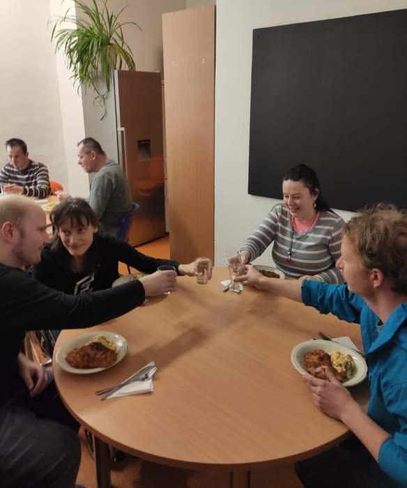 Máme za sebou první vaření a oběd v nové kuchyni, za kterou děkujeme firmě Accolade, která nám na ní poskytla finance.