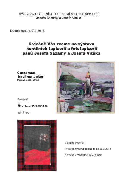 Úvod > Novinky > VÝSTAVA TEXTILNÍCH TAPISERIÍ A FOTOTAPISERIÍ - Josef Sazama, Josef Viták